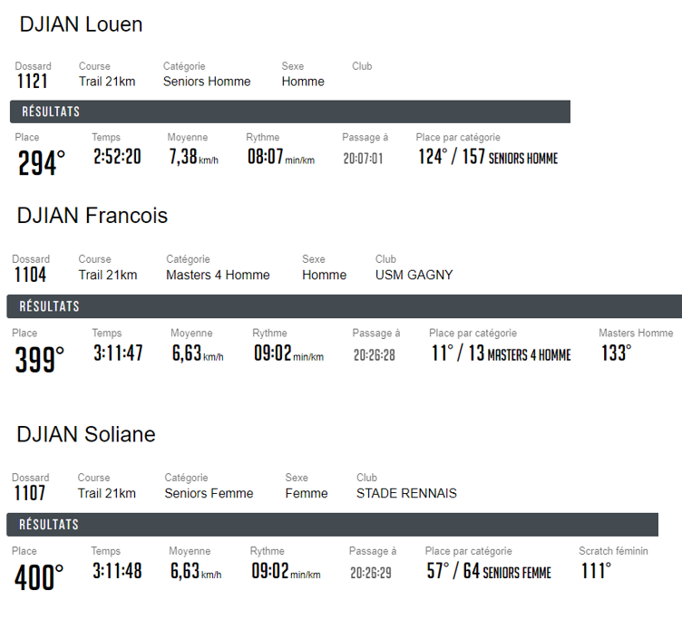Et sans oublier la belle performance du Coach de GAGNY, Stéphan en 3h33m11s.